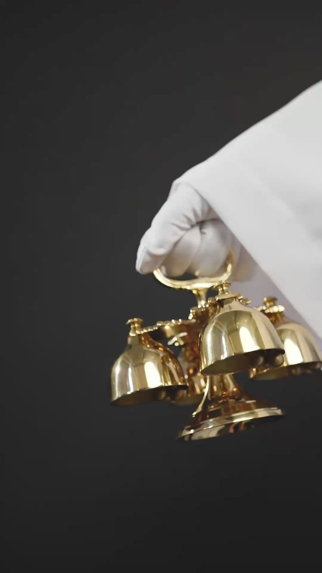 Estas campanas cuádruples únicas, hechas de fundición de bronce y acabadas en color dorado, son un adorno elegante que aporta a los espacios sagrados una atmósfera de santidad y tranquilidad. Cada campana está cuidadosamente pulida, lo que hace que su superficie refleje la luz de manera hermosa, introduciendo un brillo suave en la habitación.