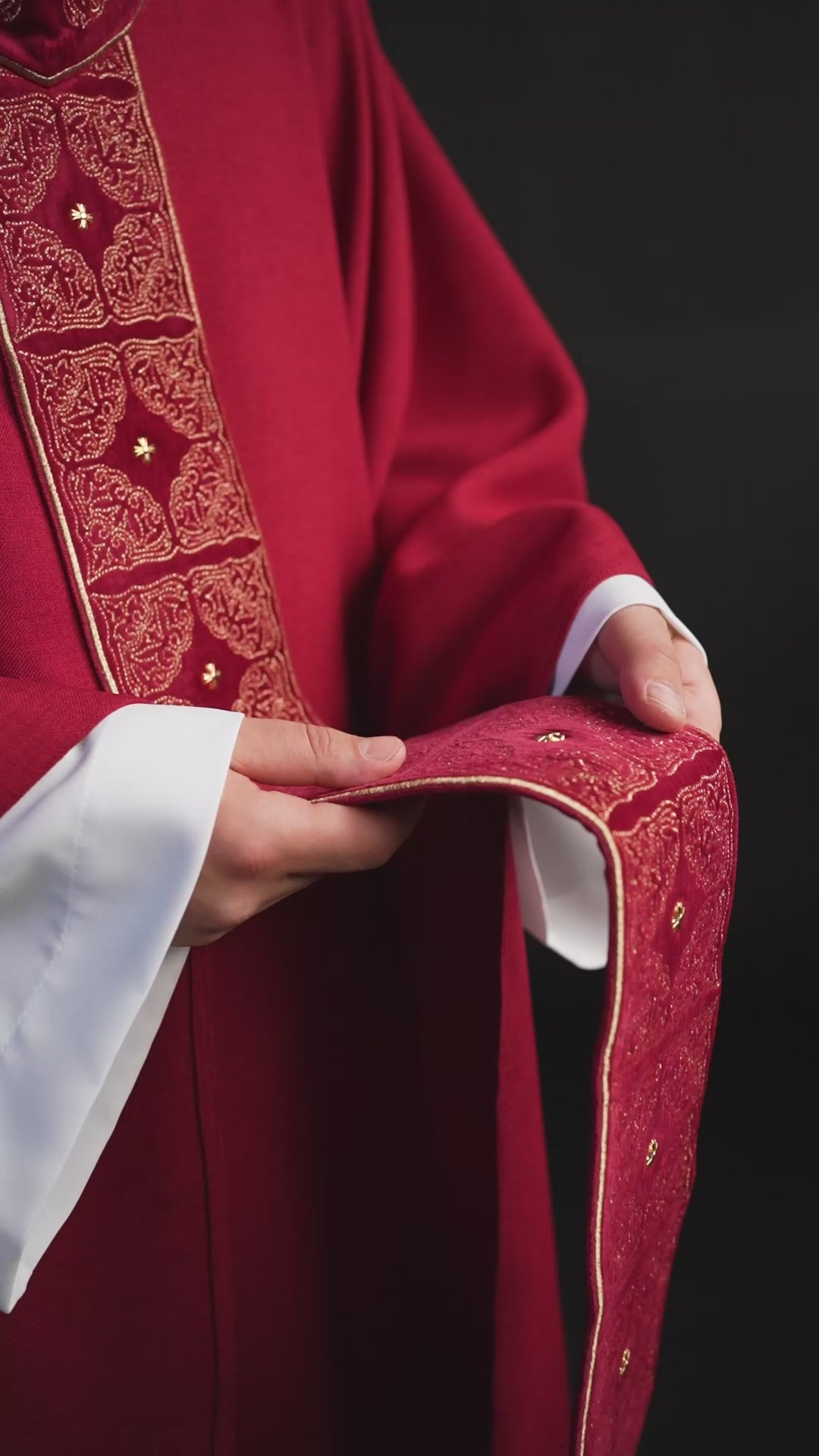 - Disponible en un corte clásico con cuello alto para mayor libertad de movimientos y un aspecto elegante. El cuello alto añade un toque moderno a la casulla, a la vez que resulta cómoda de llevar.