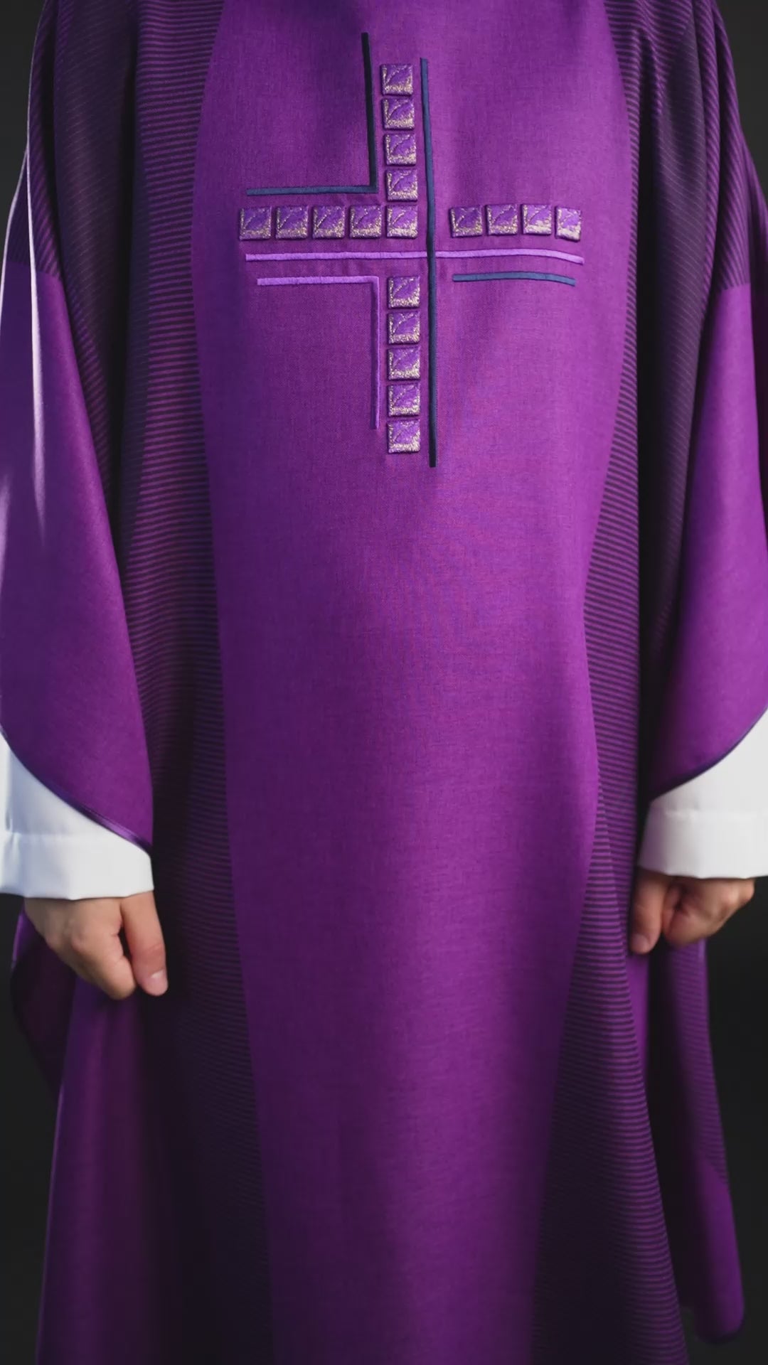 Casulla confeccionada en tejido liso de alta calidad con bordado de cruz.