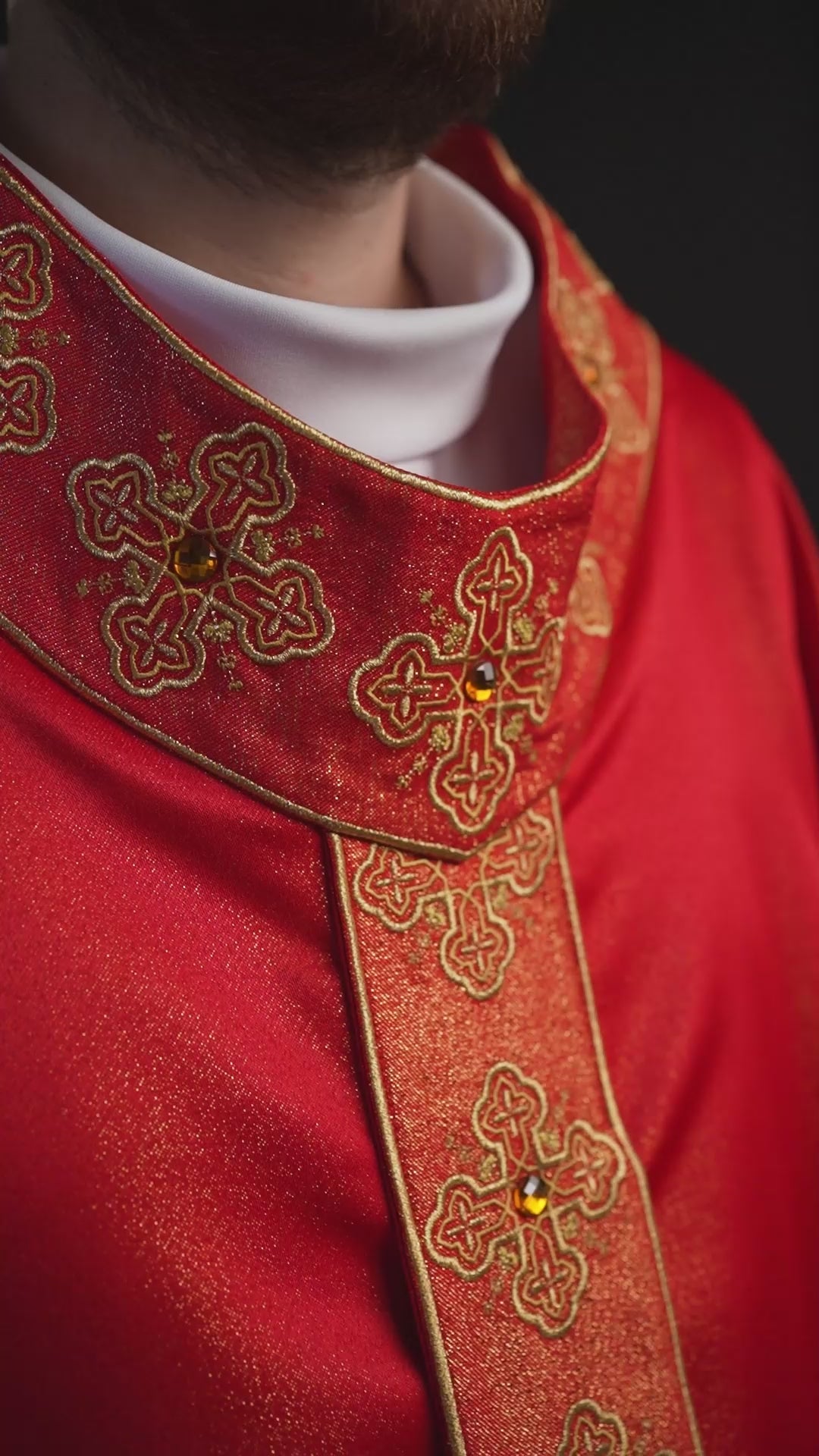 Confeccionada en tejido de alta calidad en color rojo. El tejido es agradable al tacto y se ajusta bien, garantizando la comodidad durante los servicios sacerdotales.