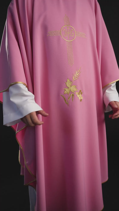 Casulla rosa con bordado IHS